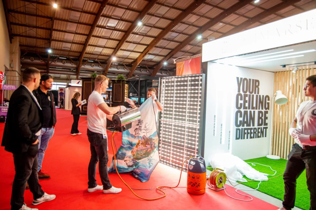Europäische Qualität der Leinwand, Profilsysteme, Beleuchtung aller Art und Gardinensysteme wurden präsentiert und fanden großen Anklang. Lebhafte Gespräche und hervorragende Eindrücke schufen eine inspirierende Atmosphäre, die lange in Erinnerung blieb.